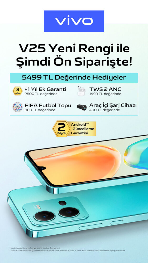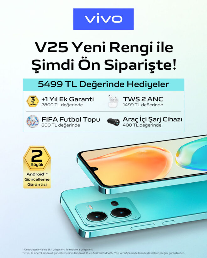 Turkuaz Mavisi Vivo V25 5G şimdi Türkiye’de ön satışta
