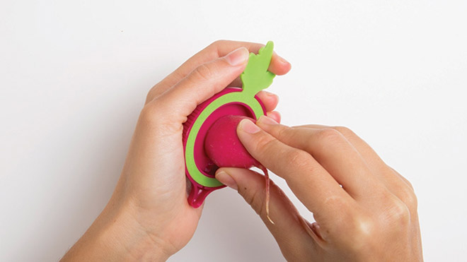Oldukça basit bir mutfak aleti olan Ravanello’nun öyle çok değişik bir numarası yok. Mini turpları soyup mantar gibi görünmelerini sağlayan turp tasarımlı bu mutfak aleti ile oluşturduğunuz mantarları süs olarak da kullanabilirsiniz. Tabii mantar şeklindeki turpu yiyen çocuğunuzun gerçek mantarın tadıyla yüzleştiğinde yaşayacağı şaşkınlığı da hesaba katın deriz. Yurt dışında 12 dolara satılan bu sevimli mutfak aletini buradan sipariş edebilirsiniz.