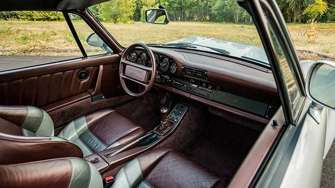 80’li yılların ortalarından 90’ların başına kadar üretilen, bu süreçte Porsche motor sporlarında da temsil eden 959, şu anda karşımızda 1987 model yıllı versiyonuyla duruyor. Hasar nedeni olarak aracın ağaca çarptığını vurgulayan satış ekibi, tampon ızgara ve kaputun değişmesi gerektiğinin altını çiziyor. Motorunun arka bölümde konumlanmasından ötürü herhangi bir hasar görmediği Porsche 959, şu anda tekerlekli bir platform üzerinde hareket ettiriliyor. Toplamda sadece 200 adet üretilen Komfort versiyonu olmasından ötürü kazalı olmasına rağmen ciddi rakamlara alıcı bulan aracın sadece 5.900 kilometrede olması da bu rakamların dile getirilmesindeki etkenlerden. Halihazırda 467.000 dolar gibi bir rakamda olan teklifin 500.000 doların üzerinde çıkması bekleniyor.