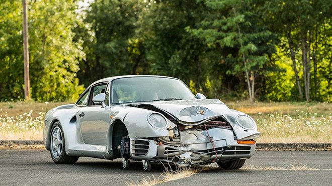 Amerika’da düzenlenen açık artırma sırasında sahnede olan Porsche 959, ciddi hasarına rağmen yarım milyon dolara yakın bir rakamla alıcı bulacak gibi görünüyor.
