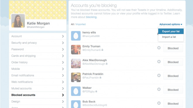 Twitter, tacizciler ve trollere karşı engelleme sistemini geliştirmeye devam ediyor. Twitter deneyiminizi iyileştirmesi planlanan yeni güncellemede engellediğiniz kullanıcıların listesini paylaşabiliyor, başkalarının listelerini edinebiliyorsunuz.