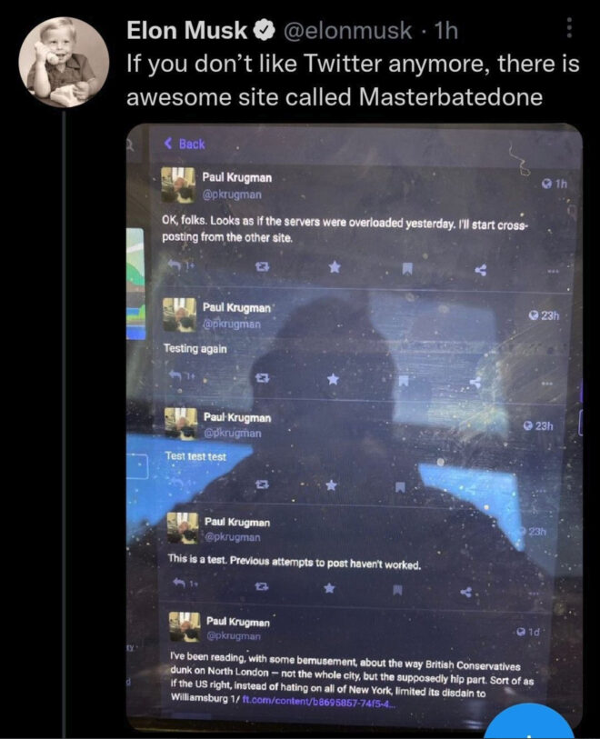 ∗Direkt olarak buradan katılım sağlanabilen Mastodon özelinde Elon Musk’ın yaptığı paylaşım yukarıda yer alıyor. Daha sonra silinen bu paylaşımın Musk gibi birisinden, Musk yaşında birisinden gelmiş olması gerçekten inanılmaz. Twitter, Musk’ın yönetimi altında gerçekten daha iyi bir yer olmayacak gibi görünüyor. Musk bunu hemen her gün kanıtlıyor…..
