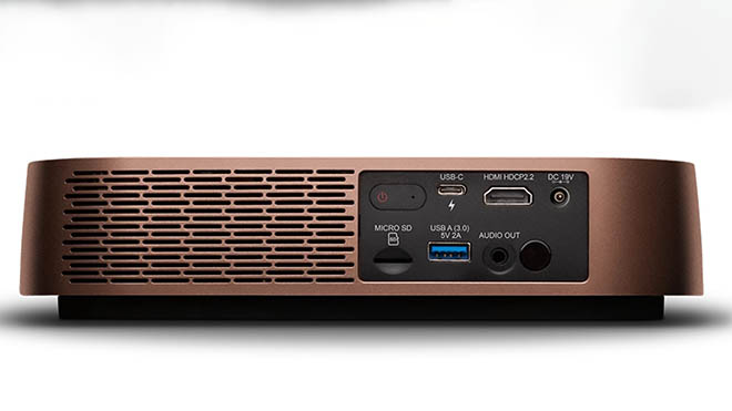 Projektörde USB-C, USB-A, HDMI ve microSD olmak üzere çok sayıda bağlantı noktası bulunuyor