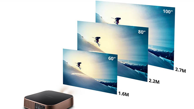 Projektör, 2.7 metre uzaklıktan 100 inç boyutunda görüntü yansıtabiliyor
