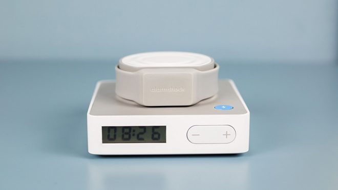 Kickstarter üzerinden kampanyası başlatılan Alarmshock kullanıcılarının alarmlarını erteleyecek geç kalma alışkanlığını ortadan kaldırmaya odaklanıyor. Temelde sistem oldukça basit. AlarmShock bir stand ve bileklikten oluşuyor. Yatmadan önce uyandırılmak istediğiniz saati bu stand üzerinden belirliyorsunuz. Ardından bilekliği takarak yatağınıza geçiyorsunuz. Saati geldiğinde alarm sadece çalmakla kalmıyor, bileklik ufak titreşimler vererek sizi dürtüyor. Alarmı durdurmak için ise kalkmanız ve bilekliği standa koymanız gerekiyor. Diyelim ki alarmı kapatmadınız. Peki o zaman ne oluyor? Alarm iki dakika içinde durdurulmadığında bileklik kullanıcısına hafif bir elektrik şoku veriyor. Böylece kişilerin uyanmama şansı kalmıyor. Üstelik stand sadece bizleri yataktan kaldırma görevi üstlenmiyor. Aynı zamanda bilekliğin şarj edilmesi için de kullanılıyor.