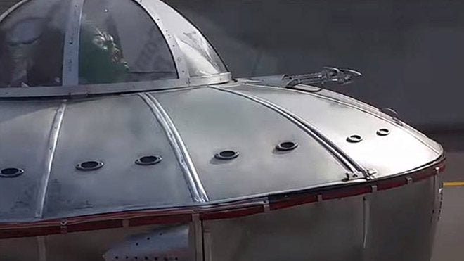 Geçtiğimiz hafta içerisinde çekildiği söylenen ve ViralHog tarafından yayınlanan bu komik olayda biz uçan dairenin asfalt üzerindeki umutsuz performansı karşımıza çıkıyor. Indiana eyaletinde çekildiği söylenen görüntülerde sol şeridi kapatmak konusunda fazla cömert olan bir grup dünyevi uzaylı, yol üzerinden geçen sürücülerin kahkahaları arasında kayıt ediliyor. Bir grup çılgın ekip tarafından tasarlandığı düşünülen bu UFO görünümlü aracın içerisindekilerin kostümü bile es geçmemeli doğrusunu söylemek gerekirse takdiri hak ediyor. Sözü fazla uzatmadan sizleri bu kısa ve keyifli anla baş başa bırakalım.