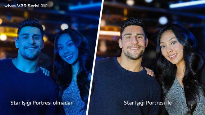 Türkiye fiyatı 8 GB RAM + 256 GB depolama için 19.999 TL olan Vivo V29 5G hakkında Vivo Türkiye detaylı olarak şunları paylaştı: “Vivo’nun Yenilikçi Star Işığı (Aura Light) özelliği, sıra dışı portre yetenekleri, şık tasarımı, güçlü performansı ve dayanıklılığı ile amiral gemisi akıllı telefon özelliklerini orta segmente taşıyan yeni modeli V29 5G tüm kanallarda tüketicilerle buluşuyor. V29 5G, tüm bu özelliklerin yanı sıra segmentinde ilk olan kavisli AMOLED ekranı ile de rakiplerini geride bırakıyor. Üstelik vivo Türkiye, V29’u 2 büyük Android güncelleme garantisi ve 3 yıl Android güvenlik güncelleme garantisi ile satışa sunuyor. Akıllı telefon fotoğrafçılığına yeni bir soluk getiren V29 5G, yenilikçi “Star Işığı” (Aura Light) özelliği ile özellikle stüdyo portresi konusunda son derece iddialı bir alternatif. Telefonun arkasında bulunan ana kamera bölümünde yer alan ve telefonlardan ayrı satılan selfie ışıklarını çağrıştıran büyük ışık halkası, standart bir flaştan dokuz kat daha fazla ama profesyonel stüdyolardakilere benzer yumuşak bir ışık sağlıyor. “Star Işığı”nın yarattığı üç boyutlu aydınlatma efekti sayesinde nesneler çok daha iyi aydınlanıyor, fotoğrafı çekilen kişinin yüzündeki gölgeler ve bulunduğu ortamdaki karanlık alanlar ortadan kalkıyor. Yumuşak aydınlatma da fotoğrafı çekilen kişinin kusurlarını örtüp doğal güzelliğini ortaya çıkarıyor. Böylece günün her saatinde birbirinden güzel ve etkileyici portre ve fotoğraflar çekmek mümkün oluyor. Star Işığı’nın güçlü performansını bazı yenilikçi teknolojiler sağlıyor: