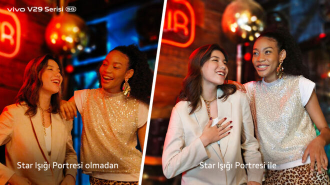 Dünyada inovasyonlarıyla bilinen vivo, V29 Serisi ile tasarımda bir ilke imza atarak amiral gemisi telefonlarda görmeye alıştığımız kavisli ekranı orta segment akıllı telefonlara taşıyor. Segmentinde ilk olan 120Hz kavisli AMOLED ekranları ile V29 ve V29 Lite, uygun fiyatları ve yüksek performansın yanında son derece şık ve zarif telefon alternatifleri olarak rakiplerini geride bırakıyor. Şık ve estetik tasarımı ve güçlü performansı ile beğeni toplayan orta segment akıllı telefon kategorisinin yeni yıldızı V29, yenilikçi “Star Işığı” (Aura Light) özelliği ile akıllı telefon fotoğrafçılığına yeni bir soluk getiriyor. Telefon özellikle stüdyo portresi konusundaki iddiası ile dikkat çekiyor. V29’un arkasında yer alan ana kamera bölümünde yer alan ve telefonlardan ayrı satılan büyük selfie ışıklarını çağrıştıran büyük ışık halkası, standart bir flaştan dokuz kat daha fazla ama profesyonel stüdyolardakilere benzer yumuşak bir ışık sağlıyor. “Star Işığı”nın yarattığı üç boyutlu aydınlatma efekti sayesinde nesneler çok daha iyi aydınlanıyor, fotoğrafı çekilen kişinin yüzündeki gölgeler ve bulunduğu ortamdaki karanlık alanlar ortadan kalkıyor. Yumuşak aydınlatma da fotoğrafı çekilen kişinin kusurlarını örtüp doğal güzelliğini ortaya çıkarıyor. Böylece günün her saatinde ve her türlü ışık koşulunda birbirinden güzel ve etkileyici portre ve fotoğraflar çekmek mümkün oluyor.