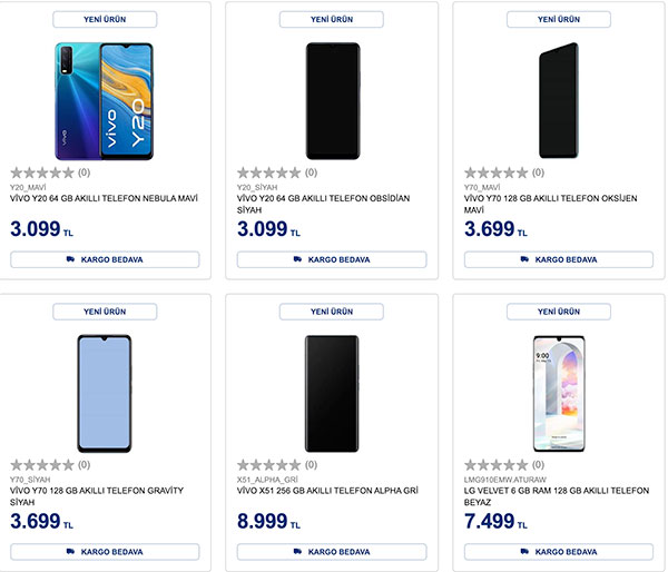 Çin merkezli akıllı telefon üreticilerinden Vivo‘nun büyük bir satış kanalındaki yerini alan modelleri Vivo Y20, Vivo Y70 ve Vivo X51, sırasıyla 3.099 TL, 3.699 TL ve tam 8.999 TL fiyat etiketlerine sahip. Damla çentikli bir tasarıma sahip olan telefonlardan alt seviye Y20 ve Y70, Snapdragon 450 ile Snapdragon 665 işlemciler üzerine kuruluyor. 5.000 mAh ve 4.100 mAh pil kapasiteleri bulunan Y20 ve Y70 modellerinden Y20’de IPS LCD ekran, Y70’de ise AMOLED ekran kullanıyor. İki telefon arasında özellikle Y70 modeli daha dikkat çekici ve alınabilir görünüyor. Fiyatı inanılmaz olan Vivo X51 ise gücünü Snapdragon 765G işlemciden alıyor ve 90 Hz AMOLED ekran kullanıyor. 4.315 mah pile sahip modelin arkasında Gimbal OIS (Optik Görüntü Sabitleme) sistemi yer alıyor. Firmanın Türkiye’de Vivo X50 Lite modeli de satılıyor. Vivo X51’in fiyatı şu an bazı kanallarda 3.099 TL seviyesinde.