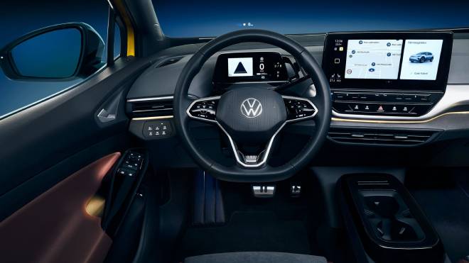 ID 4 rakamsal verilerin dışında donanımsal nitelikleriyle de merak edilen bir model oldu. Gerçekleştirilen tanıtımla birlikte kokpit bölümünde kullanıcı bekleyen şemayı da görmüş olduk. Tasarımcılar direksiyonun arkasında 5,3 inçlik dijital sürücü ekranına yer verirken ebatları 10 inç ile 12 inç arasında değilen multimedya ekranı da merkezde konumlandırıyor. “Hello ID” ses komutuyla kullanıcılara tepki verebilecek bir arayüz deneyiminin de bizleri beklediğini görüyoruz.
