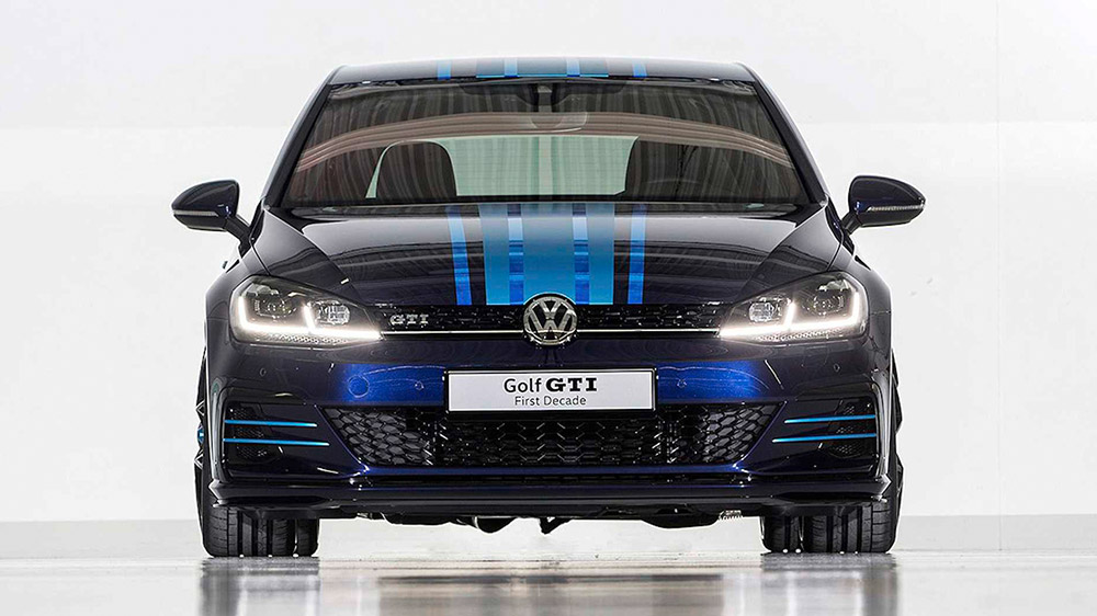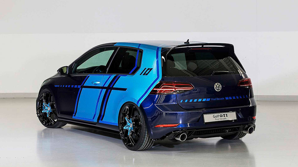 Volkswagen Golf GTI First Decade adıyla karşımıza çıkan ilk konsept proje markanın bu festivalde sergilediği 10 GTI modelinin ardından podyuma çıkan ilk proje olma özelliğini taşıyor. Halihazırda olduğu gibi Golf GTI’da kullanılan 2.0 litre turbo dört silindir ve elektrik motor kombinasyonuyla yaklaşık 420 beygir güce kavuşan araçta 20 inçlik özel tasarım jantlar, 11 hoparlörlü özel tasarım ses sistemi ve masaj fonksiyonlu koltuklar öne çıkıyor.