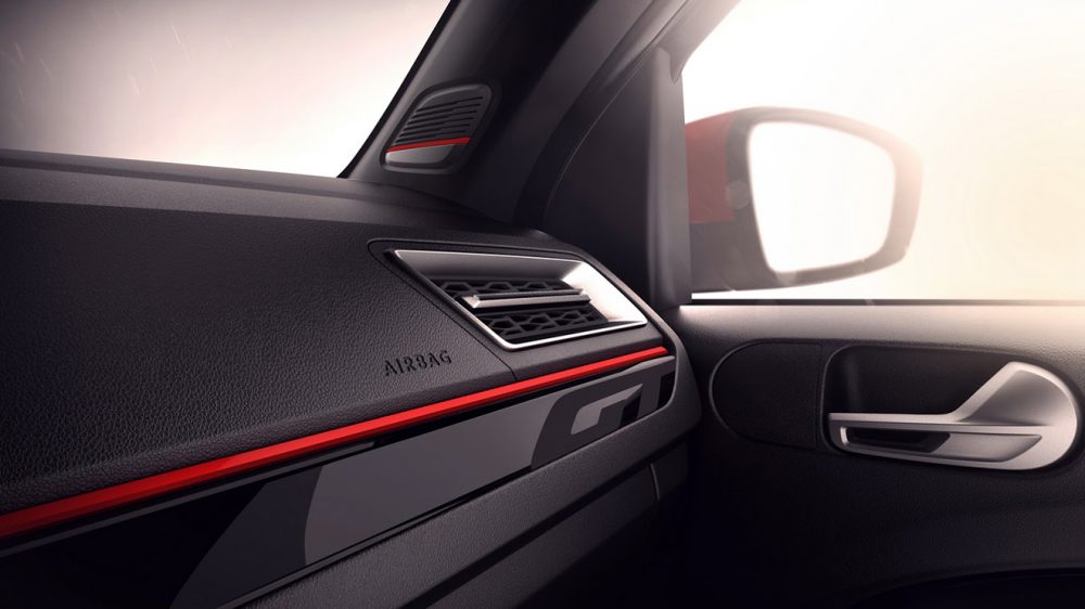 Volkswagen’in Gol GT Concept‘te yer verdiği sportif pakette yer alan egzoz çıkışları, tamponlar ve spoiler ilk bakışta fark yaratan detaylar arasında yer alıyor. Ön tamponda yer verilen Full-LED teknolojisine sahip L şeklindeki gündüz farları, konsept modeli tüm jenerasyonlardan ayıran karakteristik bir özellik olarak karşımıza çıkıyor. Volkswagen’in konsept modelde tercih ettiği jantlar ise 18 inç boyutunda. Volkswagen’in dışarıda “Volkan Grisi” olarak tercih ettiği metalik renk seçeneği, “Lav Kırmızısı” çizgiler ile tamamlanıyor. Volkswagen, dışarıda sunduğu kırmızı çizgiler, iç tasarım ve konsolda da dokunuşlar halinde bütünlüğü sağlıyor. Kokpitte üç kollu sportif direksiyona yer veren Volkswagen, yeniden tasarlanan havalandırma çizgileri, alüminyum pedallar ve sportif koltukları Gol GT Konsept’te sunuyor. Volkswagen, GT Konsept’in kaputunun altında yer alacak olan motorla ilgili detay vermesede, 125 beygir güç ve 200 nm tork üreten 1.0 litrelik TSI motorun görev yapması yüksek ihtimal olarak şu anlık karşımızda duruyor.