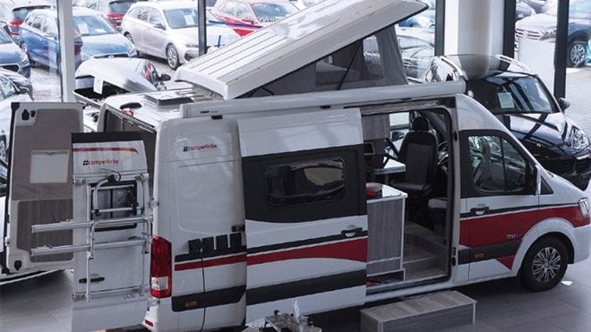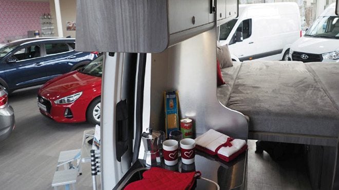 Hyundai cephesinin fabrika çıkışında sunduğu bu parçalar üzerine Camperliebe ekibinin yaptığı dokunuşların ardından, gezici otelimiz hazır hale geliyor. Modern teknolojiden faydalanılarak geliştirilen tasarımda, aracın su tankı seviyesi, ışıklandırma ve havalandırma gibi hayati verilerine tablet üzerinden erişmek mümkün. Kompakt alandan faydalanma konusunda başarılı bir dekorasyonun yapıldığı H350’de çift kişilik bir yatak, buzdolabı, tuvalet ve ufak bir mutfak gibi detaylara yer verildiğini görüyoruz. İşin içerisine tavanda konumlandırılan yatak da girdiği zaman ayın anda dört kişinin konaklayabileceği bir karavan projesi karşımıza çıkıyor. Almanya’da 58.500 euro gibi bir fiyattan alıcı bulan modellerin hazır olarak satın almanın yanı sıra, H350’ye halihazırda sahip olanların 29.500 euroluk ödemesiyle dönüşüm işleminin yapılması da güzel bir seçenek.