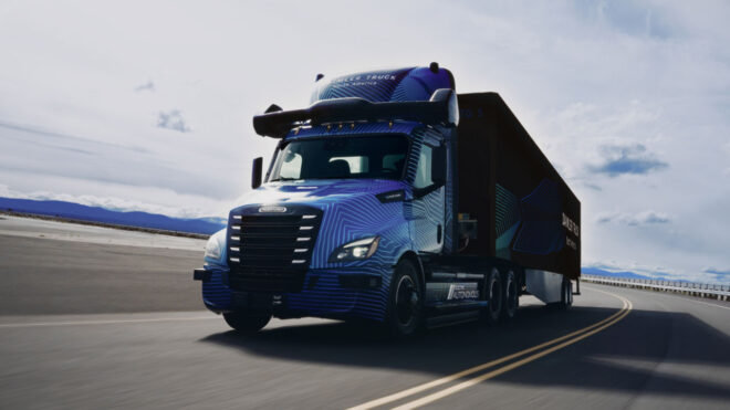 Alandaki büyük isimlerden Volvo ve Google, Uber ile Tesla gibi şirketlerin eski yöneticileri tarafından kurulan Aurora ortaklığında doğan yukarıda gördüğünüz dev araç, taşıdığı çok sayıda kamera ve sensör ile “Seviye 4” otonom yani sürücüsüz sürüş getiriyor. Direkt olarak yeni “VNL” üzerine kurulan bu kamyon, aktarıldığı kadarıyla seri üretime alınacak yani bir konsept gösterim olmayacak. İçinde hiçbir insan olmadan yol alabilecek kapasitede olduğu söylenen aracın otonom altyapısındaki donanım ve yazılımlar alanda geniş bir deneyimi bulunan Aurora’dan geliyor. Kamyonun Volvo’nun Dublin Virginia’da bulunan ve şirketin dünyadaki en büyük tesisi olan New River Valley’de üretileceği söyleniyor, ilk ticari adımın ise hemen bu yıl içinde atılacağı aktarılıyor. Bundan önce Otonom Daimler Trucks Freightliner eCascadia tanıtılmıştı. Tamamen elektrikli bir temel üzerine kurulan ve otonom yani sürücüsü olarak hareket edebilen Daimler Trucks Freightliner eCascadia, normal Freightliner eCascadia’yı temel alıyor ve taşıdığı sensörler, kameralar ve özel işlem birimiyle “Seviye 4” otonom / sürücüsüz kullanım getiriyor. Yazılım tarafında Torc Robotics firmasının destek sağladığı model henüz satışa sunulmayacak, onun için ABD özelinde 2027 yılının beklenmesi gerekecek. 370 km gibi düşük bir menzil değerine sahip olan dev araç, şu aşamada bir teknoloji demosu olarak kullanılacak ve birçok farklı testte aktif olarak yer alacak.