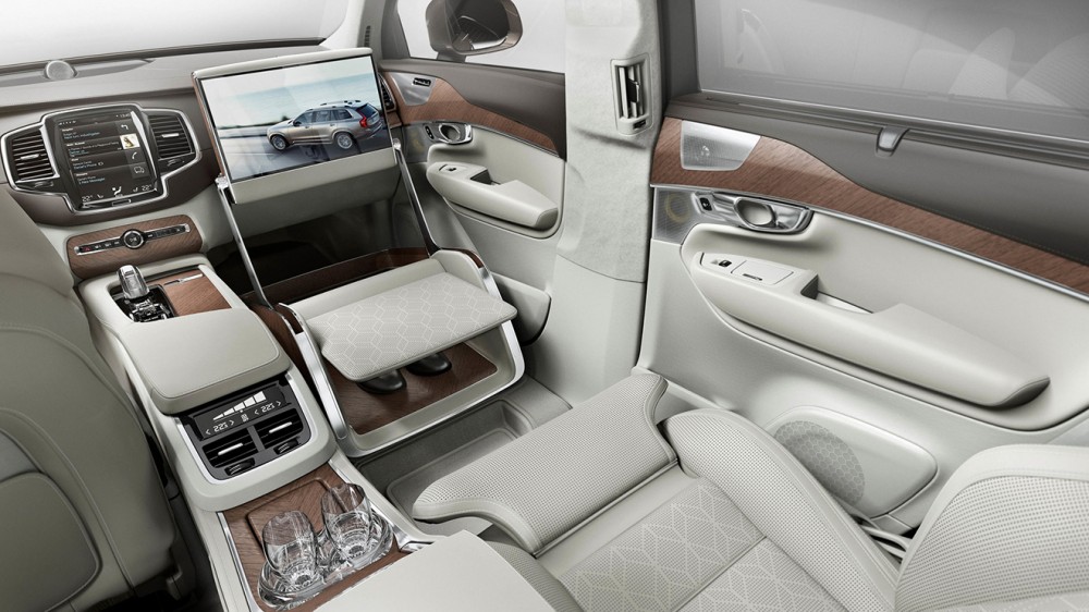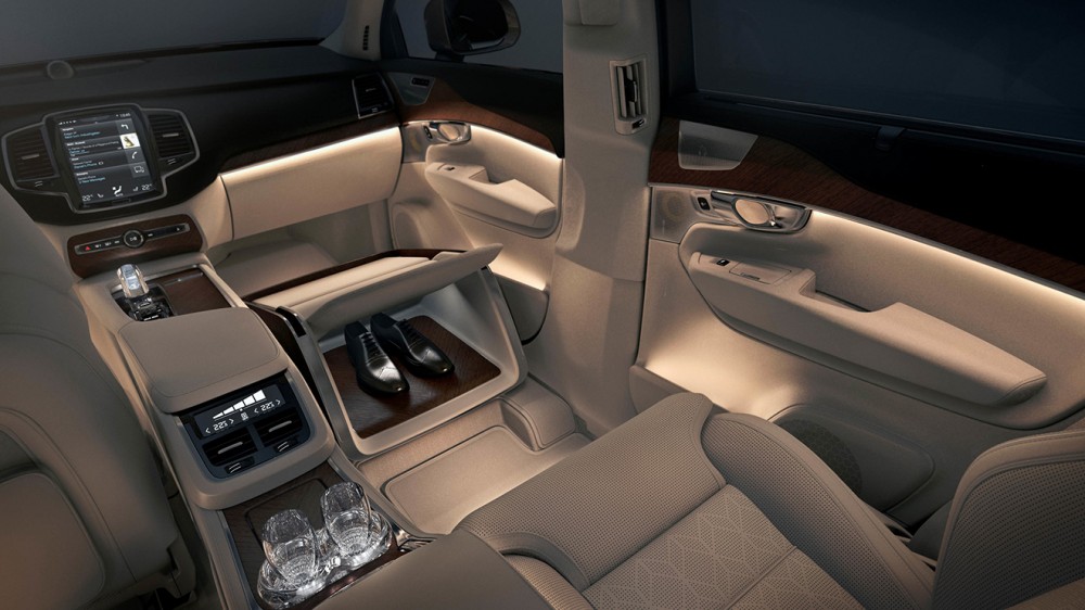 Volvo, şoför yanındaki yolcu koltuğunu kaldırarak, yerine şekilden şekle giren ve birçok farklı amaçla kullanılabilen bir konsol fikrini yani Lounge Console’u ortaya çıkarmış durumda. İlk etapta ayak uzatma yeri gibi görünse de bu tasarımın birçok farklı kullanım şekli var. Laptop masası, ayakkabılık, saat ve aksesuar saklama yeri, makyaj masası, 17 inçlik bir eğlence ekranı bunlardan bazıları.