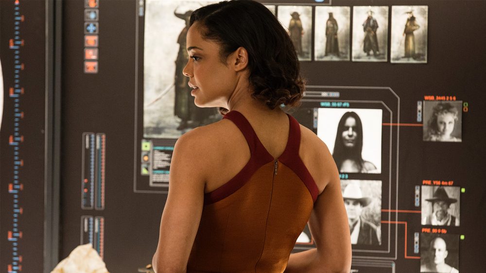 Her bulduğumuz fırsatta incelemede Anthony Hopkins övgüleri yapıyoruz ancak dizinin etkileyici oyuncu kadrosunda övgüye değer pek çok isim var. Bunlardan biri sekiz bölümdür karakterini ince ince işleyen Thandie Newton. Maeve’i canlandıran Newton da kelimelerden çok bakışlarıyla oynayanlardan. Bir Hopkins değil belki ama geçmişte karakteri anlamamıza oldukça yardımcı oldu diyebiliriz. Newton bu bölüm de yine yüzüyle oynamaya devam ediyor.