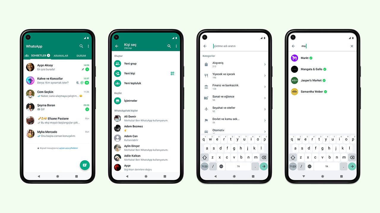 Bugün kişilerin WhatsApp’ta işletmeleri bulmasına, işletmelere mesaj göndermesine ve ürün ile hizmetleri satın almasına yardımcı olmak üzere geliştirilen yeni özellikler duyuruldu. Şirket bu konuda resmi blog sayfasında şunları aktardı: “İnsanlar WhatsApp’ta halihazırda faaliyet gösteren milyonlarca küçük işletmeden ve on binlerce markadan hızlı bir şekilde yardım almanın kolay bir yolunu arıyor. Bugün, işletmeleri doğrudan WhatsApp’ta bulma imkanını kullanıma sunduk.
