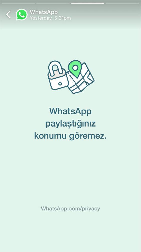 İlkemizde yapılan güncellemelerin, arkadaşlarınız veya ailenizle aranızdaki sohbetlerin gizliliğini hiçbir şekilde etkilemediğini açıkça belirtmek istiyoruz. Aksine, bu güncelleme, WhatsApp üzerinden işletmelere mesaj gönderme özelliğiyle ilgili değişiklikleri içeriyor ve verileri nasıl topladığımız ve kullandığımız konusunda daha fazla şeffaflık sağlıyor. WhatsApp üzerinden işletmelere mesaj gönderme, tamamen isteğe bağlı bir özellik.
