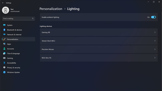 Bu sistem sayesinde ürünlerdeki RGB ışıkların kontrol edilmesi için iCue ya da Razer Synapse gibi üçüncü parti yazılımlara gerek kalmayacak, her şey direkt olarak Windows ayarları içerisinde ayarlanabilecek. Burada şimdilik “parlaklık, ışık efekti, efekt değişim hızı ve renk” gibi konularda özelleştirmelerin sunulacağı gösteriliyor. RGB ışıkların tek tuşla Windows rengine uyumlu hale getirilmesi de masada yer alan bir imkân olurken, bu altyapının henüz ne zaman herkes için devreye alınacağı bilinmiyor. Ancak şimdilik geliştirme sürecinin erken aşamasında olunduğu ve çıkışa daha ciddi zaman olduğu düşünülüyor.