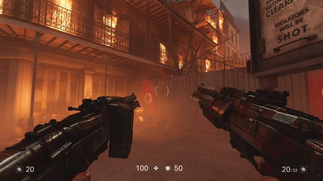 Wolfenstein deyince akla gelen en önemli özelliklerden biri de çift elle silah kullanmak tabii ki. Her iki elinize de farklı silahlar alıp, arzu ettiğiniz şekilde sıka sıka gidebiliyorsunuz.