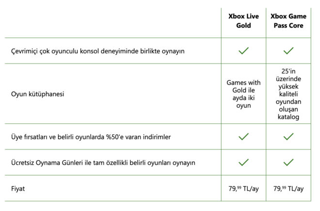 Microsoft bu konuda geçtiğimiz aylarda, “Xbox Live Gold yerini 14 Eylül 2023‘te çıkacak olan Xbox Game Pass Core’a bırakıyor. Şimdi Live Gold’a kaydolun ve çıktığı anda Game Pass Core’a erişim elde edin.” demiş ve “Game Pass Core’un Xbox Live Gold’dan daha iyi olan özellikleri nelerdir?” sorusuna resmi olarak şu cevabı vermişti: “Game Pass Core, Xbox Live Gold’un çevrimiçi çok oyunculu konsol avantajlarına ve ayrıca Xbox Series X|S veya Xbox One konsolunuzda oynayabileceğiniz 25’ten fazla yüksek kaliteli konsol oyununun yer aldığı etkileyici ve kapsamlı bir kataloğa Xbox Live Gold ile aynı fiyattan erişim imkanı sunar.” Oyuncuların çok yakından tanıdığı Xbox Live Gold çok uzun zamandır aramızdaydı. Xbox konsollarda online oyun oynamak için zorunlu olan, kişilere her ay ücretsiz oyunlar sunan ve fazlasına sahip olan Live Gold, şu an aylık 79,99 TL fiyata sahip ve bu açıdan Xbox Game Pass Core için de Türkiye’de aynı ücret isteniyor. Bugün bir açıklama yapan Microsoft’a göre Game Pass Core ile ilk günden itibaren pakete dahil olarak sunulacak oyunlar ise şunlar olacak: