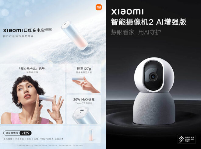 Xiaomi’den bugün Civi 2’ye ek olarak Power Bank 5000mAh Lipstick Edition isimli kompakt bir powerbank ile Smart Camera 2 AI Enhanced Edition isimli bir akıllı özelliklere sahip güvenlik kamerası da gelmiş durumda. Civi Türkiye’ye gelmeyecek ancak bu aşağıda görebileceğiniz diğer iki ürün Türkiye pazarına gelebilir.
