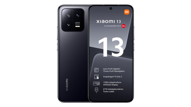 Xiaomi 13 modeli 6,36 inç FHD+ 120 Hz E6 OLED 1.900 nit ekran üzerine kuruluyor, gücünü Snapdragon 8 Gen 2 işlemciden alıyor ve Xiaomi imzalı Surge G1 pil yönetim çipine sahip 67W kablolu, 50W kablosuz ile 10W ters kablosuz şarj destekli 4.500 mAh pil taşıyor. Önünde 32 megapiksel selfie kamerası olan telefonun arkasında üçlü kamera yer alıyor. Burada spesifik olarak Sony IMX800 sensörlü 50 megapiksel ana + 12 megapiksel ultra geniş açı + 3.2x optik zoom sunan 10 megapiksel telefoto kameraları bir araya geliyor.