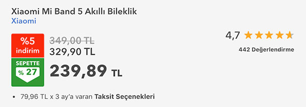 Xiaomi Mi Band 5 akıllı bileklik modeli, Türkiye’de hatırlarsınız normalde 369 TL‘den satışa çıkmıştı. Çıktığından bu yana gerçekten çok talep göre dikkat çekici bu modeli şu an büyük bir satış sitesinde 239 TL‘ye almak mümkün durumda. 250 TL altında düşüşe devam eden akıllı bileklik, düzenli iniş üzerinden anlaşılabileceği üzere önümüzdeki dönemde daha da ucuzlayacak. Fiyatı bu gidişle 200 TL seviyesini 1-2 ay içerisinde görecek bileklik, biliyorsunuz yerini aldığı Mi Band 4’e oranla devrimsel yenilikler getirmiyor ancak yine de Türkiye pazarında öne çıkmayı ciddi şekilde başarıyor. Mi Band 4 modeli ise şu an yapılan son indirimler sayesinde Türkiye’de 164 TL seviyesinde ulaşmak mümkün. Yeni sürüm popüler oldukça eski sürümün indirim artıyor.