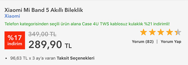 Xiaomi Mi Band 5 Türkiye fiyatı indirimle en düşük seviyede