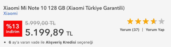 Xiaomi Türkiye garantili Xiaomi Mi Note 10 için indirimler sürüyor. Dikkat çeken modelin fiyatı en düşük seviyelerden birisine inmiş durumda.