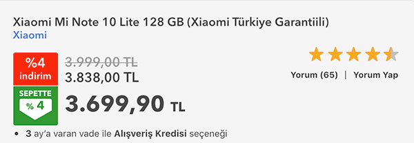 Xiaomi Mi Note 10 Lite 128 GB Türkiye fiyatına güzel indirim