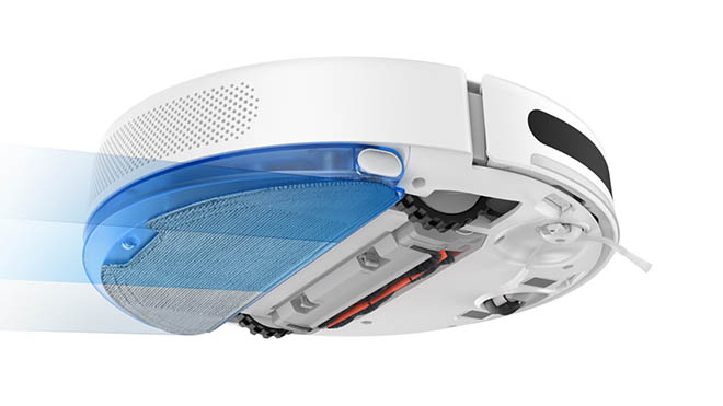 270 ml’lik büyük kapasiteli su haznesi, elektronik kontrollü su pompası ve 3 su seviyesi ayarıyla vakumlu paspas, gerektiğinde su dağıtarak paspas bezinin uygun şekilde ıslak olmasını sağlıyor. Robot süpürge ince tasarımıyla yatak, dolap ve kanepeler gibi çoğu mobilyanın altında kalan kirleri sıkışmadan temizleyebiliyor.
