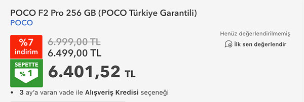 Xiaomi POCO F2 Pro, Türkiye’de 8 GB RAM + 256 GB depolama için 7.999 TL fiyat etiketiyle duyurulmuştu. Daha altta yer alan 6 GB RAM + 128 GB için açıklanan fiyat ise 6.999 TL seviyesinde yer alıyordu. Şimdi ise telefonun 6 GB RAM + 128 GB depolamalı versiyonu büyük bir satış kanalında resmi Xiaomi Türkiye garantisiyle 5.516 TL‘ye satılmaya başlandı. Bu fiyat halen şimdiye kadar gördüğümüz en düşük rakam değil ancak yine de orijinal fiyata oranla oldukça iyi görünüyor. Türkiye’de beyaz, mor, mavi ve gri renklerde elde edilebilen telefon, daha önce de aktardığımız üzere pop-up selfie kamerasıyla etkileyici bir tam ekran deneyimi sunuyor. Aynı satış kanalında telefonun 256 GB depolamalı versiyonu ise şu an 6.401 TL‘ye satılıyor.