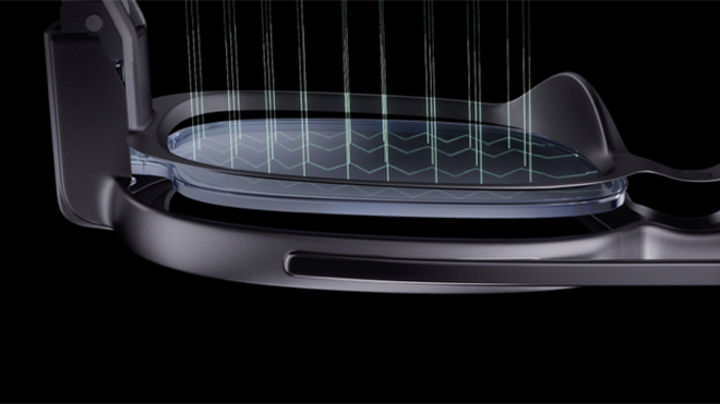Gözlük tasarımıyla standart gözlükleri andırsa da sunduğu özelliklerle fark yaratıyor. Gözlükte 0,13 inç boyutunda MicroLED ekran kullanıyor. MicroLED ekran yüksek piksel yoğunluğuna sahip ve bu sayede iyi bir deneyimi sağlanıyor. MicroLED’de ışığı 180 derecede kıran bir optik frekans yönlendirici lens kullanılıyor. MicroLED ekran, optik frekans yönlendirici lensin mikroskobik ızgara yapısı aracılığıyla ışınları insan gözüne doğrudan iletiyor. İç lensin üzerine kazınmış ızgara yapısı, ışığın benzersiz bir şekilde kırılmasına ve güvenli bir şekilde insan gözüne yönlendirilmesine olanak tanıyor. Kırılma süreci, ışığın sayısız kez yayılmasını, insan gözünün tam bir görüntü görmesini ve giyerken kullanılabilirliği büyük ölçüde artırmayı içeriyor.