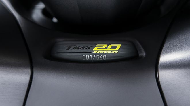 Performansı ve tasarımıyla sınıfında hep dikkat çekmeyi başaran Tmax, amacı sadece işe ya da okula hızlı ulaşmak olmayan, özellikle spor motosikletin heyecan verici hızlanma ve yüksek hız dengesine, eğlenceli ve konforlu sürüş deneyimine hayran olan kullanıcılara hitap ediyor. Dünya üzerinde sadece 560 tane olan 20’nci Yıl Modeli onu özel ve tek yapan çeşitli yeniliklerle karşımıza çıkıyor. En önemli özelliklerinden birisi, her scooter’a kendisine özgü “el işçiliği” sunan dövme karbon gövde. Tek tip dokuma desenli geleneksel karbon fiberden farklı olarak TMAX 20’nci Yıl Modelinde kullanılan dövme karbon fiber bileşenler, 560 ünitenin her birini benzersiz kılan kendi yüzey kaplamasına sahip.