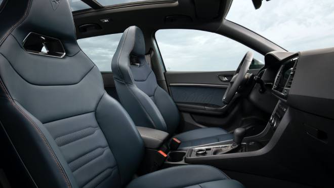 Aracın içerisinde ise yeniden konumlandırılmış 9.2 inç dokunmatik multimedya ekran, yeni deri kaplı direksiyon simidi, 10.25 inç dijital kokpit, yeni döşeme seçenekleri de güncellemenin bir parçası olarak karşımızda duruyor. Aracın kaputunun altında 2.0 litrelik benzinli motor standart olarak 7 kademeli DSG ve dört tekerlekten çekişli altyapıyla geliyor. Performans değerlerinde herhangi bir değişim gözlemlenmeye model 300 PS güce ve 400 Nm torka devam edecek. Buna rağmen 0’dan 100’e hızlanması 0,3 saniye iyileştirilen Cupra Ateca, 4,9 saniyede bu değeri yakalayabiliyor. Açıklanan maksimum sürat değeriyse 247 km/s. Araçta daha önce olduğu gibi, Adaptif Şasi Kontrolü standart olarak gelirken, Akrapovič egzoz sistemi ve Brembo frenler de opsiyon listesinde geliyor.