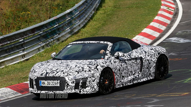 Audi sevilen spor otomobili R8’in Spyder modeli için test sürüşlerine başladı. Nürburgring’de test sürüşüne çıkan otomobil MOTOR TREND’in casus kameralarına yakalandı ve tamamen kamuflajlı da olsa tüm detaylarıyla görüntülendi.