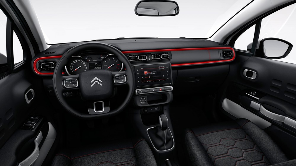 Yalnızca dış tasarım değil, iç mekanda da alabildiğine kişiselleştirme imkanı mevcut. Direksiyon simidini, koltuk kenarlarını, yan panelleri ve konsolu saran deri malzeme dikkat çekerken söz konusu detaylar farklı malzeme ve renk seçenekleriyle değiştirilebiliyor. İşin teknolojik kısmını ise Apple CarPlay ve Android Auto destekli 7 inçlik multimedya ekranı hallediyor. Yeni C3’te ayrıca kaza anlarını kaydeden ConnectedCAM sisteminin de kullanılacağı belirtiliyor.