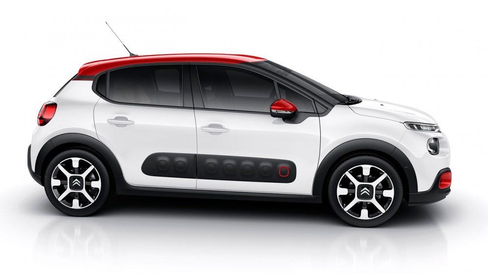 Öncelikle C4 Cactus’te gördüğümüz airbump teknolojisi C3’te de hemen dikkatimizi çekiyor. Kapılara yerleştirilen bu koruma panelleri görüntüden ibaret değil elbette. İçi hava ile dolu, termoplastik polüretandan üretilen paneller çarpma ve sürtmelere bağlı çizikleri ve göçmeleri önlüyor. Bir diğer yandan da otomobilin sıra dışı tasarım anlayışını tamamladığı da bir gerçek. 9 farklı gövde rengi seçeneği sunan Citroen, ana gövde rengini yine geniş yelpazede kontrast tonlarıyla tamamlıyor.