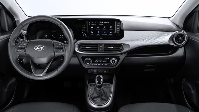 Yeni i10, standart 4,2 inç LCD gösterge, dijital klima, akıllı anahtar, önde ve arkada USB tip-C bağlantılarıyla dikkat çekiyor. Hyundai i10, 8 inç multimedya ekranı, Apple CarPlay ve Android Auto ile üst segmentteki otomobilleri aratmıyor. Daha fazla güvenlik için Hyundai Smart Sense donanımlarını da standart olarak sunuyor. Önden Çarpışma Önleme Asistanı (FCA) da bisikletçileri içerecek şekilde genişletilmiş. FCA, ön trafikteki olası kazaları tespit etmeye ve bunlardan kaçınmaya yardımcı oluyor.