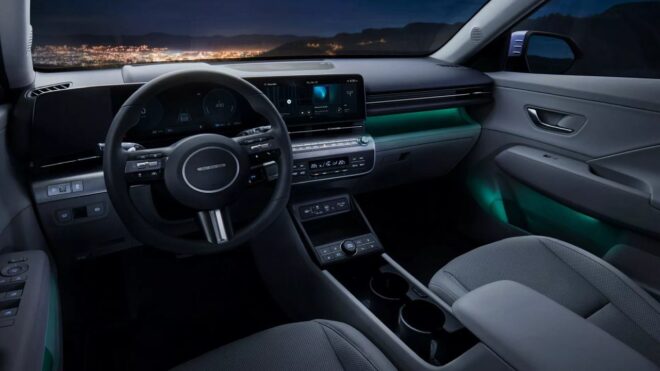 Yeni Kona’da iç yaşam alanı tarafında da geliştirmeler bizi bekliyor. Maksimum yaşam alanı sağlamak için bir önceki nesle göre 150 mm daha uzun olarak tasarlanan modelin toplam uzunluğu 4.355 mm’ye çıkarılırken, yine önceki modele göre genişliği 25 mm ve dingil mesafesi de 60 mm artmış durumda. Kokpit tarafında paylaşılan ilk detaylara baktığımızda 12,3 inçlik çift geniş ekranlar ve kayan kokpit tasarımı sayesinde yüksek teknoloji mobilite izlenimi öne çıkıyor.