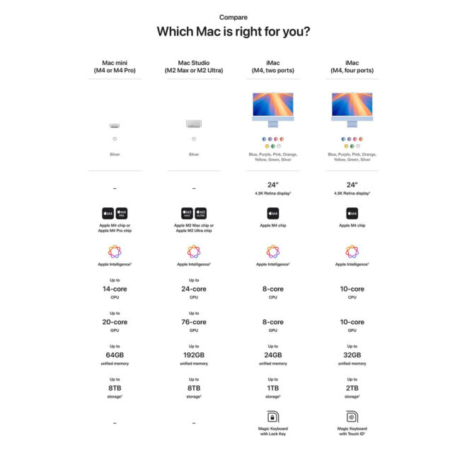 Dün gece M4 işlemcili yeni iMac’i tanıtan Apple, bugün ya da yarın yeni Mac mini ile karşımıza çıkacak. Peki yeni model nasıl olacak? Amazon sayesinde tüm sürpriz kaçmış durumda. Mac Studio’nun çok daha ufak bir versiyonu olarak hazırlanan ürün, M4 veya M4 Pro işlemciyle alınabilecek. En az 16 GB, en çok 64 GB RAM ile donatılabilecek ürün, en üstte 8 TB depolama ile alınabilecek. M4 Pro işlemciyi yeni “mini” özelinde maksimum 14 çekirdekli CPU ve 20 çekirdekli GPU ile sunacak olan Apple, yeni mini’yi sadece “gümüş” renkte hazırlamış ve cihazın önüne iki adet USB-C portu konumlandırmış durumda. Bahsettiğimiz yeni 24 inç 4.5K Retina ekranlı iMac modeli için Apple şunları aktarıyor: “Apple bugün, güçlü M4 çipi göz alıcı, ultra ince bir tasarımda sunan iMac’i tanıttı. M4 çipe sahip iMac, M1 çipli iMac’e kıyasla günlük üretkenlik uygulamalarında 1,7 kata kadar, fotoğraf düzenleme ve oyun oynama gibi daha zorlu iş akışlarındaysa 2,1 kata kadar daha hızlı. M4 çipteki Neural Engine sayesinde yapay zeka için dünyanın en iyi hepsi-bir-arada bilgisayarı olan iMac, gizlilikten ödün vermeden kullanıcıların çalışma, iletişim kurma ve kendilerini ifade etme biçimini dönüştüren kişisel yapay zeka sistemi Apple Intelligence için tasarlandı. Model şimdi capcanlı renk seçenekleriyle sunuluyor ve 24 inç 4.5K Retina ekran şimdi yeni nano-texture cam seçeneğine sahip. iMac yeni Masa Görüntüsü özellikli 12MP Center Stage kamera, dört adet Thunderbolt 4 bağlantı noktası USB-C bağlantısı dahil uyumlu renklerde aksesuarlar sunuyor. Şimdi standart olarak 16 GB birleşik bellekle ve sadece 59.999 TL’den başlayan fiyatlarla sunulan model için bugünden itibaren ön sipariş verilebiliyor ve model 8 Kasım Cuma günü satışa sunuluyor.”