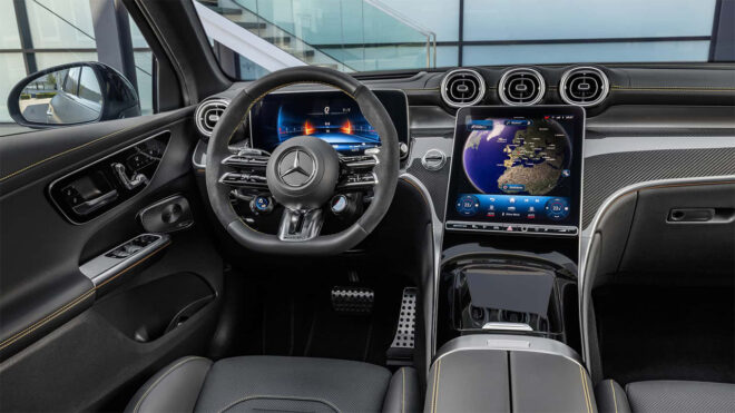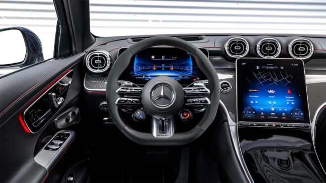 Üstte yer alan GLC 63 S E Performance ise gücünü aynı dört silindirli 2 litre motordan alıyor ve arka aksa yerleştirilen elektrik motorun katkısıyla eski AMG GLC 63 S’in V8 motorunun sağladığı 503 beygir gücü geride bırakarak toplam 671 beygir güç sunuyor. “M139L” kodlu ana motoru büyük turboların etkisiyle 469 beygir, elektrik motoru ise spesifik olarak 201 beygir güç üreten araç, bu kombinasyon ile beraber 0’dan 100 km/s hıza 3,5 saniyede çıkabiliyor. Mercedes’in MBUX merkezli göz alıcı kokpitini bir kez daha karşımıza çıkaran yeni AMG modelleri, sportif koltukları ve direksiyonları ile büyük bir albeni oluşturuyor. Gri lansman renginin benimsendiği GLC 63 S E Performance modelinin dışına kışkırtıcılığı artıran güzel aerodinamik dokunuşlar atan firma, bu versiyonda dört çeker 4Matic+ ve dokuz ileri otomatik şanzıman sistemine yer veriyor. AMG GLC Coupe modelini daha sonra tanıtacağı aktarılan Mercedes, performans odaklı “AMG” ailesini büyütmeye devam ediyor. Yeni AMG’lerin fiyatı ise henüz açıklanmış değil.