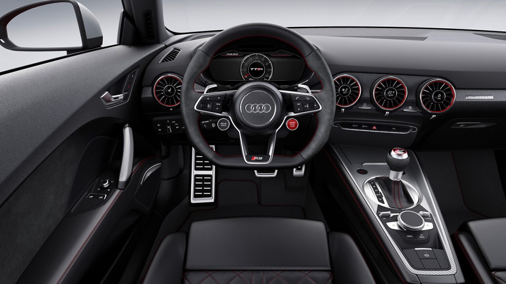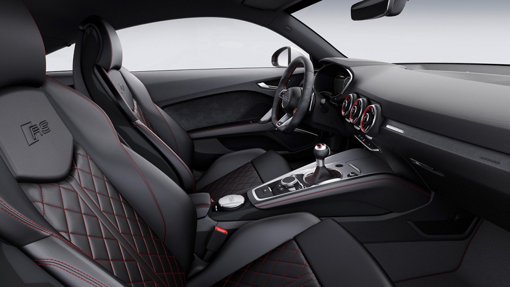 Alıştığımız TT formunu korumakla birlikte daha keskin farları, daha büyük splitter ve hava girişleri sayesinde daha agresif bir ön tampona kavuşan TT RS ailesi, arka kısımda ise daha yumuşak bir duruş sergiliyor. Opsiyonel olarak daha büyüğüyle değiştirilebilen spoiler ve oval egzoz çıkışları arka tamponun dikkat çeken detaylarından. 19 ve 20 inç çapında jant seçeneklerine sahip olan otomobillerde Audi’nin Matrix OLED arka aydınlatmaları opsiyonel sunuluyor. Dışarıda olduğu gibi kabinde de sportif RS tasarımı hakim. Bolca kullanılan RS logoları, sportif direksiyon simidi, deri koltukları ve Alcantara döşemeler içeriyi zenginleştiren detaylar arasında.