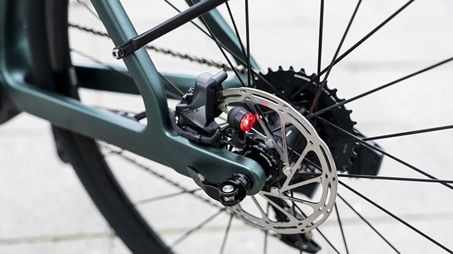 Bünyesinde DT Swiss G 1800 jantlar, Schwalbe G-One lastikler, SRAM Force AXS hidrolik disk frenler ve 1 x 12 SRAM Force AXS elektronik aktarma / dişli altyapısı olan yani kayış kullanmayan Storck Cyklaer elektrikli bisiklet, Busch & Müller aydınlatmaları da beraberinde getiriyor.