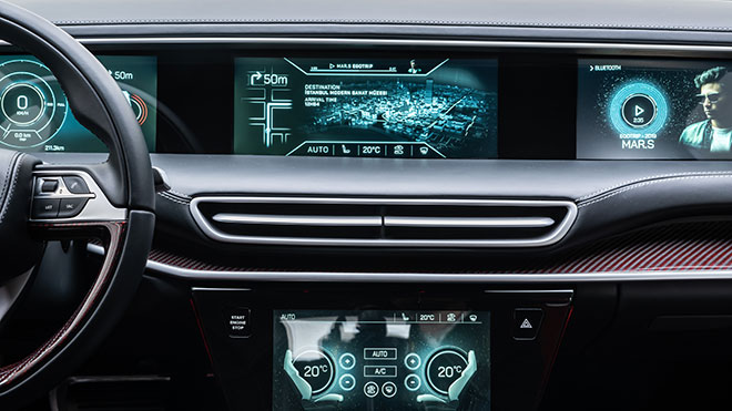 Dün öğlen saatlerinde Gebze’deki Bilişim Vadisi’nde gerçekleşen Yeniliğe Yolculuk Buluşmasında C-SUV modeliyle birlikte C- Sedan konsepti tanıtıldı. Bu yerli otomobil modellerinin dış tasarımları bildiğiniz üzere oldukça güzel. Gerçekten burada çok güzel bir iş çıkarılmış. Peki iç yaşam alanı ve kokpit tasarımı nasıl? Şimdilik C-Sedan’ın içi detaylı şekilde gösterilmiyor. C-SUV modelinin içi ise gerçekten harika görünüyor. Yukarıda yayımlanan resmi görselde de görebileceğiniz üzere C-SUV oldukça lüks bir tamamen elektrikli otomobil modeli. Burada aracın öncelikle kokpitine bakalım. Burada tam altı farklı ekran karşımıza çıkıyor. Bu ekranların üçü üst kısımda yer alıyor. Baktığımız zaman sürücüye iki adet, yan yolcuya ise bir adet ekran sunuluyor. Kokpitin altında ise klima gibi ayarların yapılması için dördüncü bir dokunmatik ekran bizleri karşılıyor.