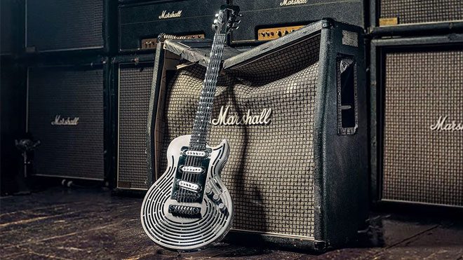 Konserlerin vazgeçilmezi ikonik elektrogitar kırma şovu tarih mi oluyor? Andy Holt ve Sandvik‘in 3D baskı titanyum gitarı amfileri parçalıyor.