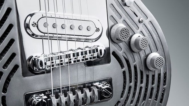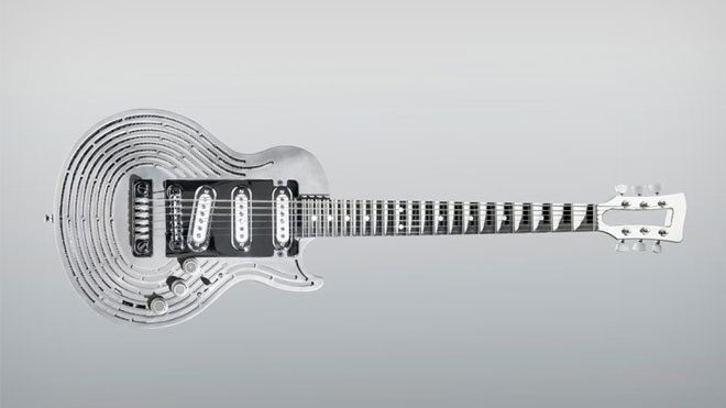 Rock yıldızlarının ikonik elektrogitar kırma şovu, konserin tepe noktasını oluştururken beraberinde de hayli kalabalık bir gitar mezarlığı getiriyor. Andy Holt ve Sandvik ise “Tüm elektrogitarlara hükmedecek, kırılmaz ve yok edilemez bir gitar mümkün mü?” sorusunu cevaplıyor. Cevap ise 3D baskıda saklı. Alanında uzman isimlerin geliştirme süresince üzerine çalıştığı gitar 3D baskı titanyum gövdeyle geliyor. Hayli karmaşık bir tasarımı bulunan gitar için hafif ama sağlam gövde ikilemi çözülmek zorunda kalınmış.