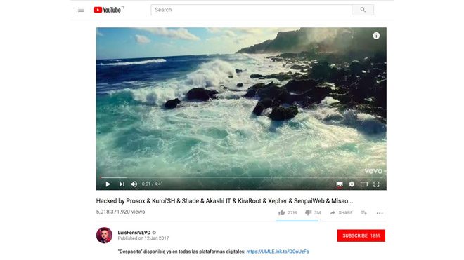 YouTube‘un en çok izlenen videosu hackerların saldırısına uğradı. Despacito 5 milyar görüntülenmenin ardından platformdan silindi.